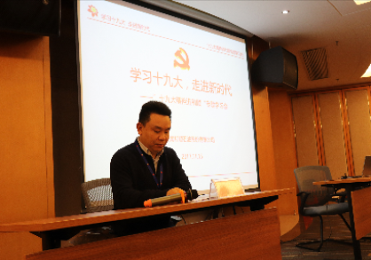 在这次学习贯彻党的十九大精神座谈会上,首先由副总裁胡灿明导读题为“学习十九大 走进新时代”的十九大陈诉焦点内容;随后各参会人员踊跃讨论,积极讲话,分享了对十九大聚会会议陈诉的学习心得和体会,纷纷体现将不忘初心,为公司生长壮大添砖加瓦。